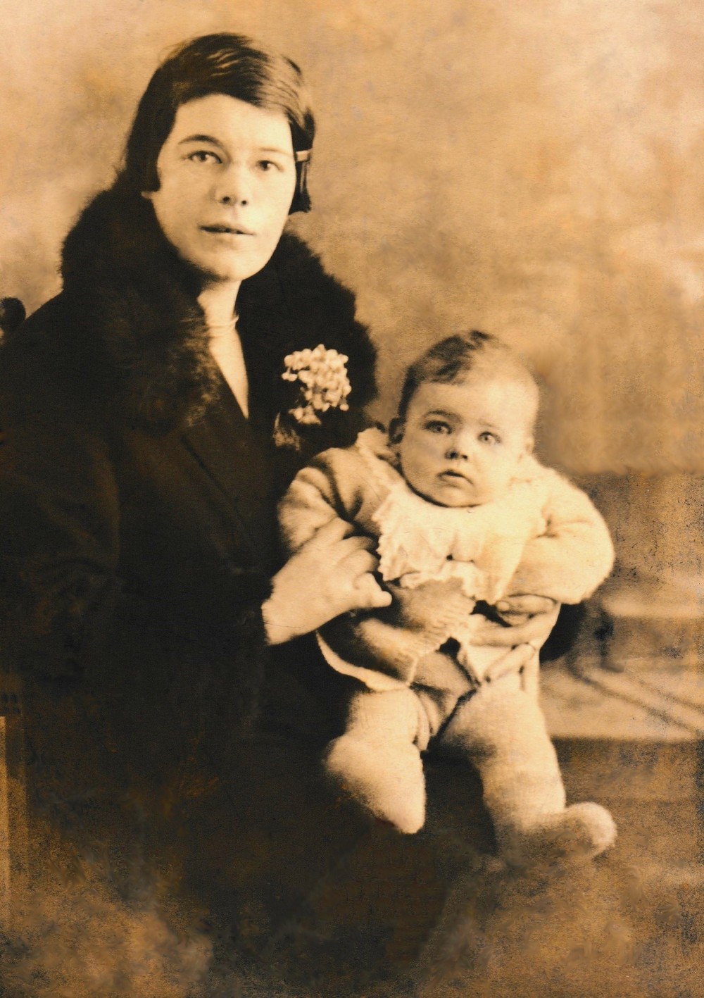 Derek Cheese as a baby with his mother in 1928.