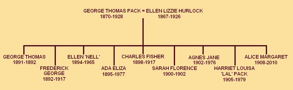Parents; George Thomas Pack (1870-1928) = Ellen Lizzie Hurlock (1867-1926)