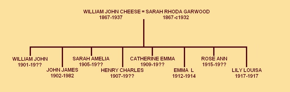 Parents; William John Cheese (1867-1937) = Sarah Rhoda Garwood (1867-c1932)