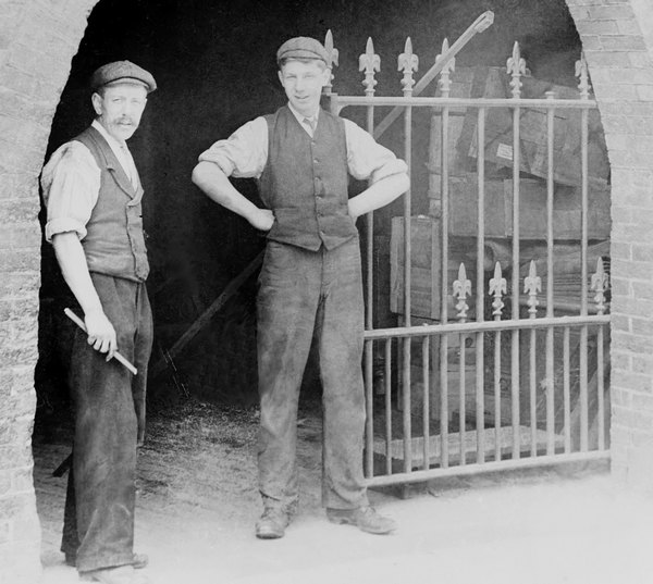 The Morris iron foundry in Lewes. In the centre, apparently speaking to each other are Frank (1869-1913) and Robert (1865-1948), sons of