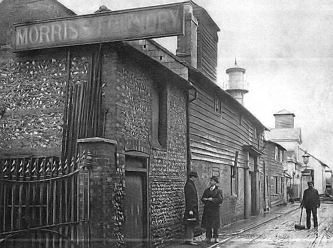 The Morris works in Foundry Lane, looking from Cliffe High Street towards the Lewes Gas Company premises.