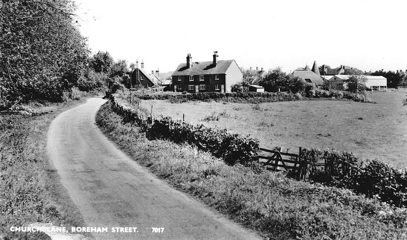 Church Lane, Boreham Street, looking north. From a post card sent by Charlotte to me on my 5th birthday in 1952.