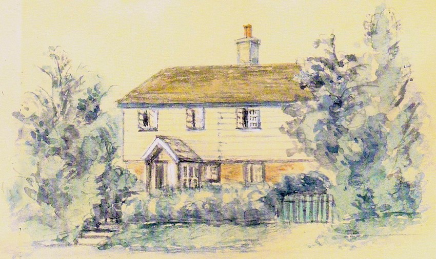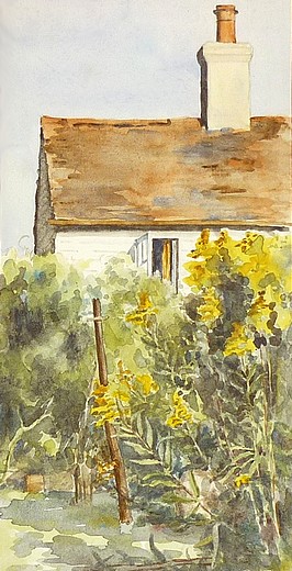 Watercolour painting of Ryderswell Cottage by Charlotte I Gilbert (1886-1976) around 1950.