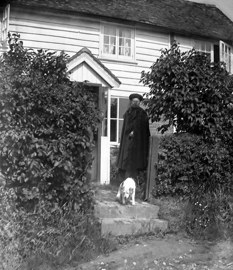 Ellen Isabel Gilbert and Pharoah the dog outside Ryderswell Cottage around 1926.