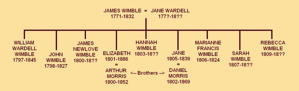 Children; Nehemiah Wimble Morris (1825-18??), Arthur Morris (1826-1907), Audrey Wimble Morris (1829-??),