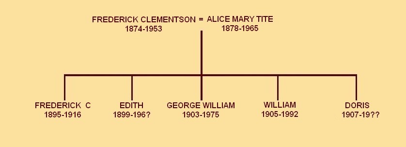 Parents; Frederick Clementson (1874-1953) = Alice Mary Tite (1878-1965)
