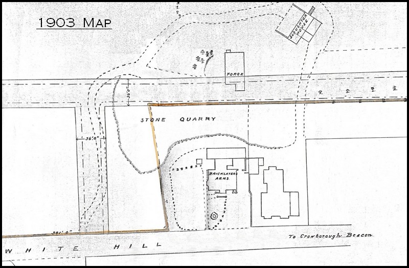 By 1903 the area between the Bricklayers Arms and the Forge had become a large stone quarry.
