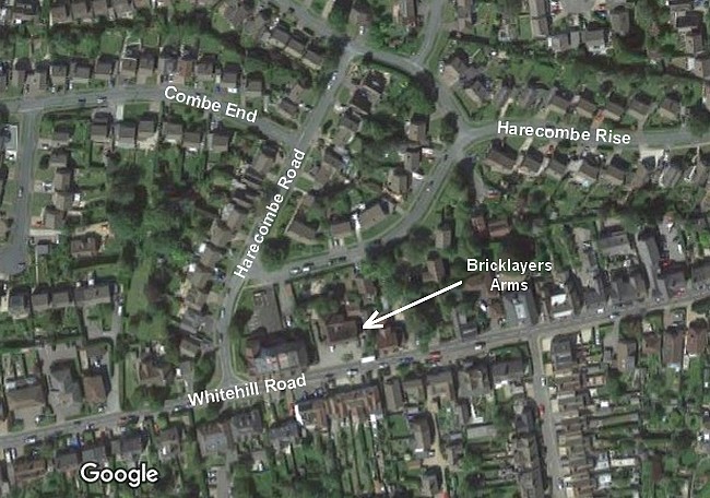 By 1911 Albion House was being used as a Post Office and, at some point, Clermont House became the Conservative Club (or possibly the other way round). Mr A V Divall confirmed to Richard Gilbert senior in 1979 that he had been sub-postmaster at White Hill Post Office (possibly the former Albion House) for many years, and he bought the quarry from Harman in 1925. A narrow strip of land at right angles to White Hill Road, and corresponding approximately to the unbuilt road shown on the 1903 map, belonged to a Mr Nicholson from the 1930s and 1959. Nicholson was still alive in 1979 and known to Mr Divall. The slaughter house was demolished in 1950 but the Bricklayers Arms still stands (the earliest record I've found of the pub is in Kelly's Directory of 1882 showing George Anscombe as landlord).