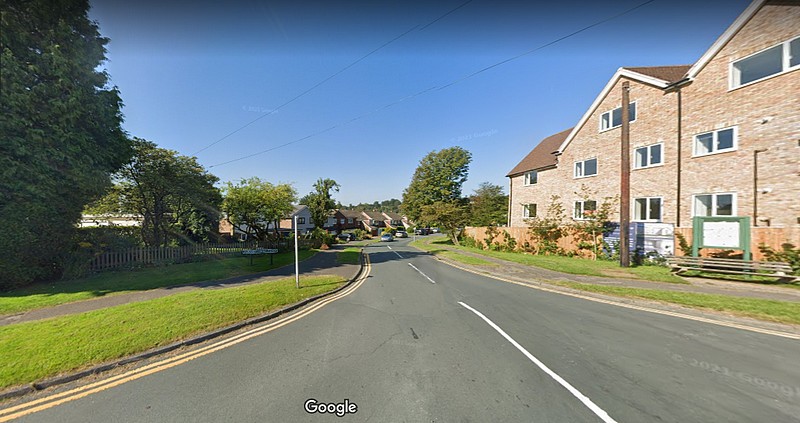 Google Streetview image looking from Whitehill Road into Harecombe Road, entry to the Harecombe estate.