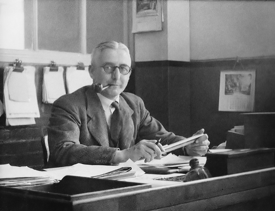 William Gilbert, around 1950 at work in the offices of Ransomes, Sims & Jefferies, Ipswich.