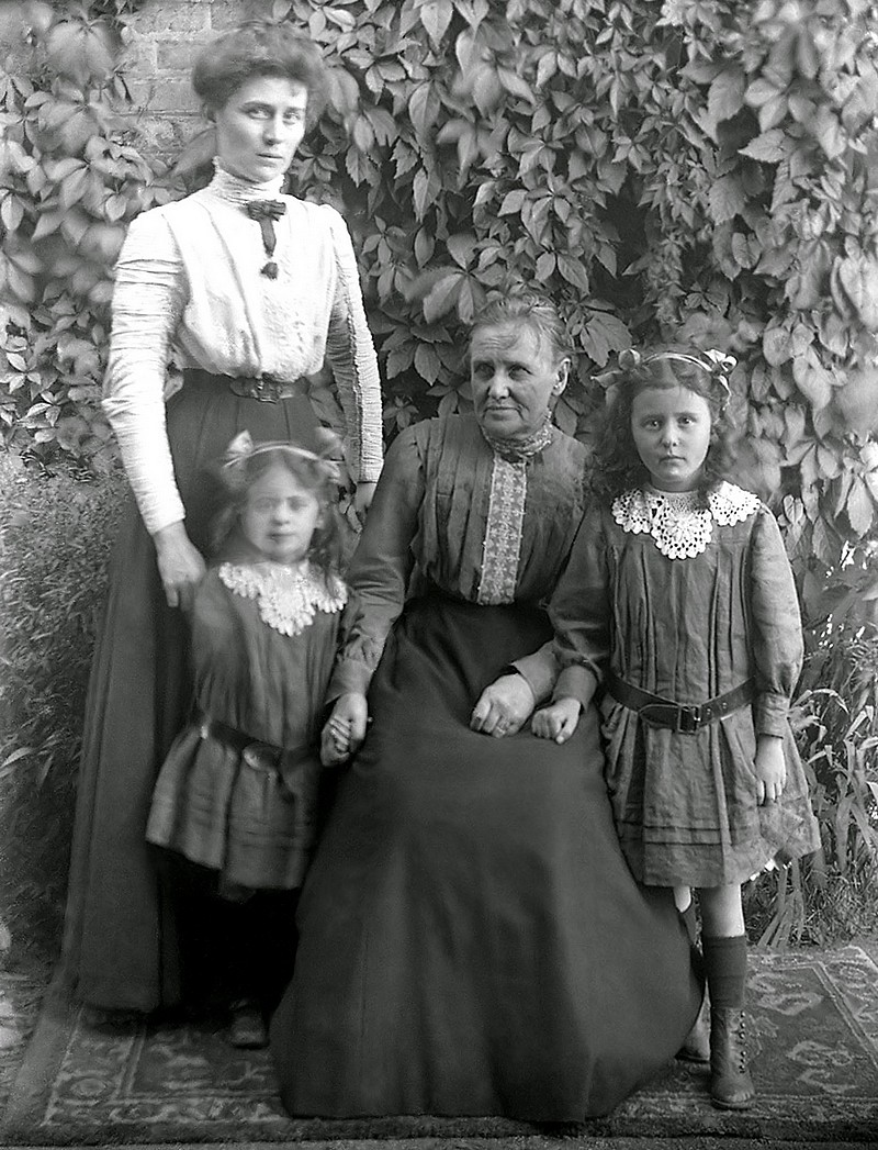 Alice Hedgecott (formerly Kyte) with her daughter Mabel and granddaughters Marjorie and Elsie, around 1911.