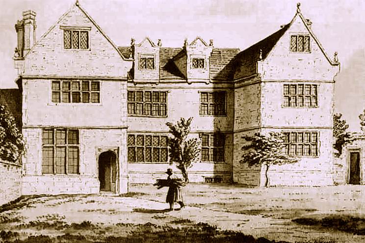 Through all this, the Fullers had remained as tenants at Tanners Manor. But in 1617 Capt Samuel Fuller (son of John Fuller 2, and born in the Manor in 1589) appears to have bought the Manor from the Sackvilles. The exact date of the existing house is not known but, like many Elizabethan houses, its shape was designed to simulate the "E" monogram of the Queen. She died in 1603, so it must pre-date that. The initials "S.F." appear over the front door, which may well refer to Samuel Fuller's involvement with the project at some point. In 1653 Samuel died and ownership passed to his son John Fuller 3 (1617-1679).