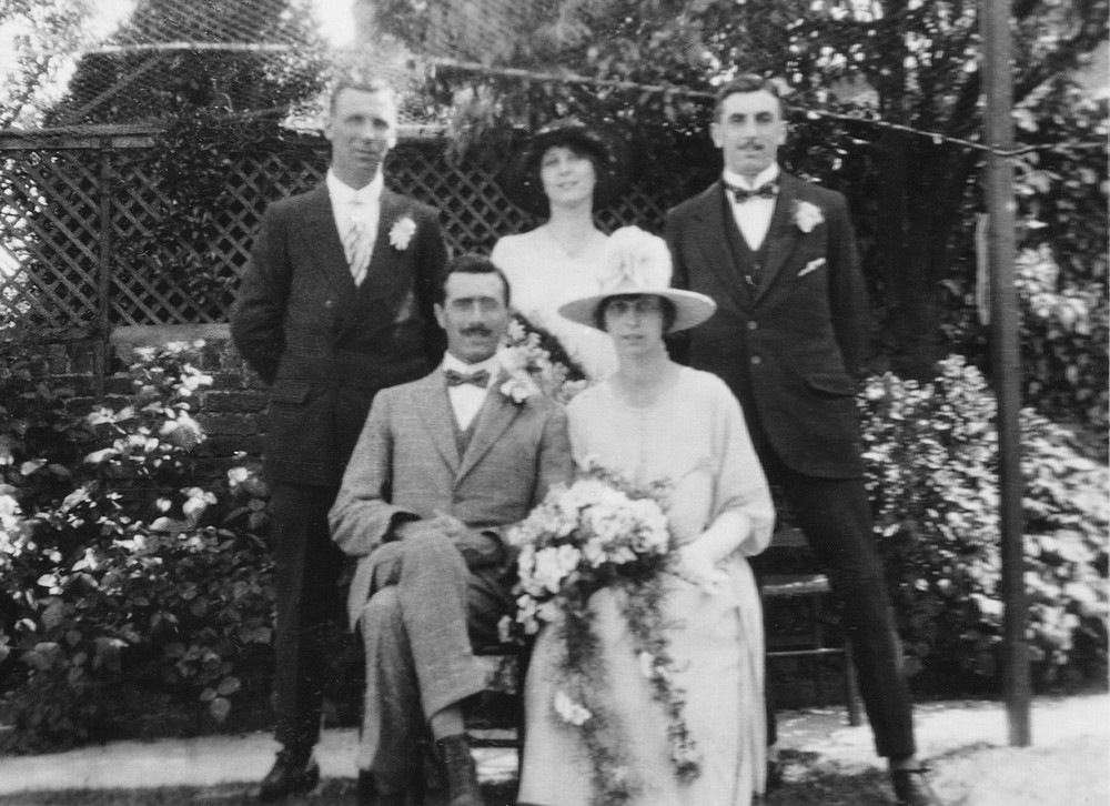 Also in the picture are Reginald Nelson Morris and Marjorie Morris (May's brother and sister) and Frank Vinall (George's brother)