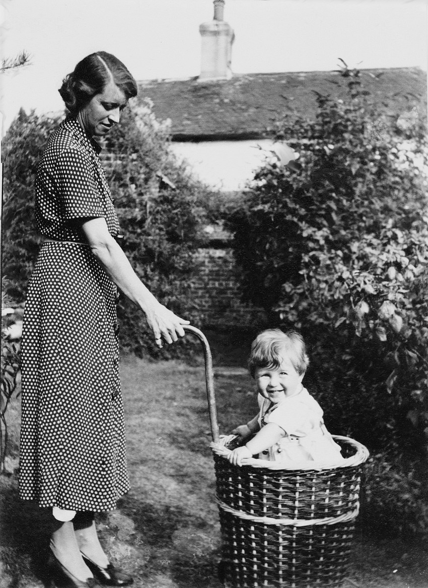 Gwladys Morris with young Stephen in 1937 at Ryderswells Cottage, Vines Cross, Sussex.