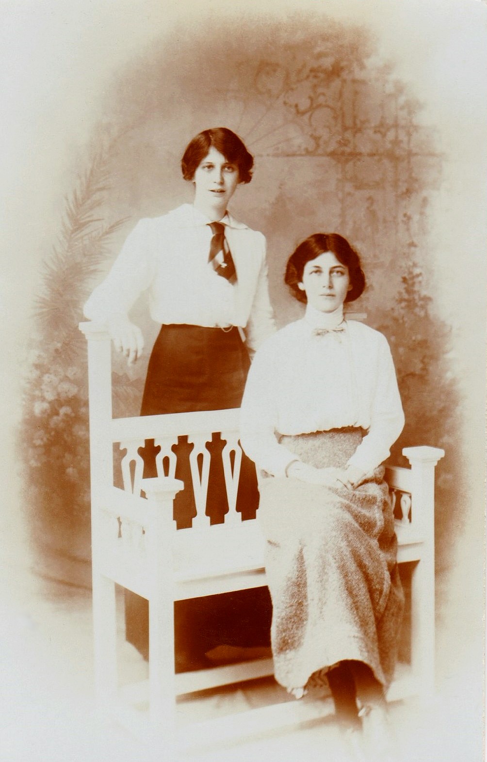 May Morris with her cousin Mary Gilbert at Folkestone, May 1914.