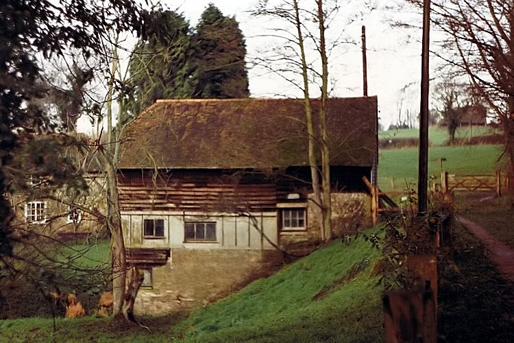 Tickerage Mill building with the cottage on the left. Photo by H.R.Gilbert, December 1988.