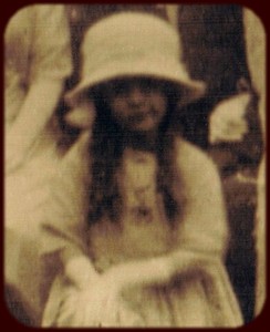 Gladys Wall, aged about 7, at the wedding of Fred Wall and Ethel Plummer, 5 March 1922, Barking.